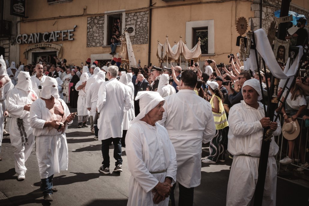 Un racconto per immagini dell’ultima edizione dei Riti di Penitenza dell’Assunta di Guardia Sanframondi (BN). Le foto sono una testimonianza degli stati d’animo che mi hanno accompagnato durante i sette giorni di agosto fino ad arrivare al culmine emotivo della processione finale con i battenti e la statua della Madonna per le vie del paese.